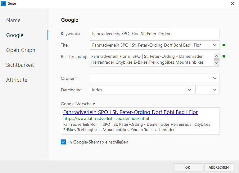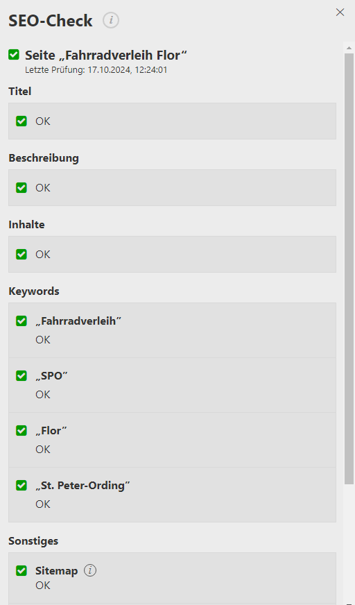 Im "SEO-Check" überprüfen ob alles passt