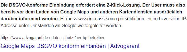 https://www.advogarant.de/infocenter/schwerpunkt/datenschutz-fuer-hp-betreiber/google-maps-dsgvo#:~:text=Die%20DSGVO%2Dkonforme%20Einbindung%20erfordert,Umst%C3%A4nden%20an%20Google%20weitergeleitet%20werden.
